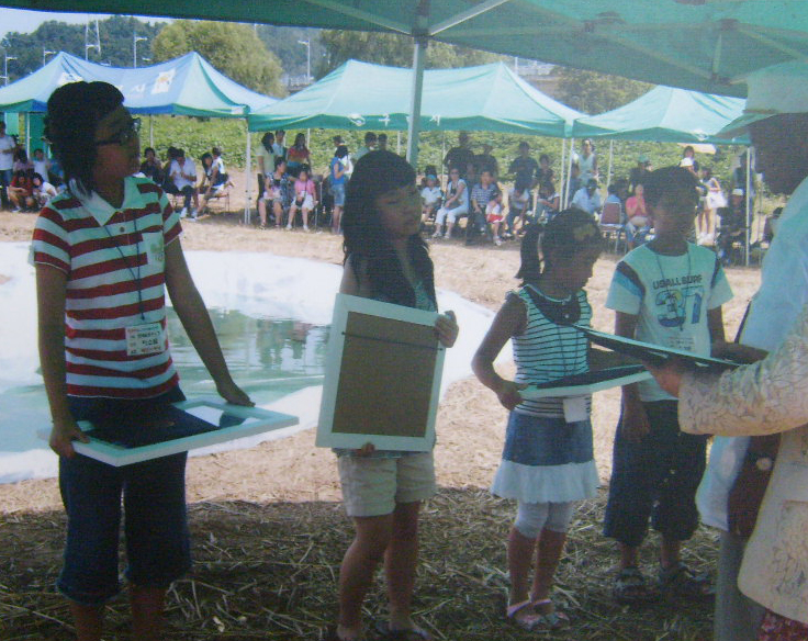 6ȸ ÀÛǰ°ø¸ð´ëȸ ¼ö»óÀÚ°¡Á·ÀÌ À¯Ã¤²É¹ç ±¹ÅäüÇèÀå¿¡ ÀÖ´Â µ¶µµ¸ðÇü ÁÖº¯ÀÇ ¿¬¸ø¿¡¼ Çâ¾î¸¦ ¼ÕÀ¸·Î Àâ°í ÀÖ´Ù